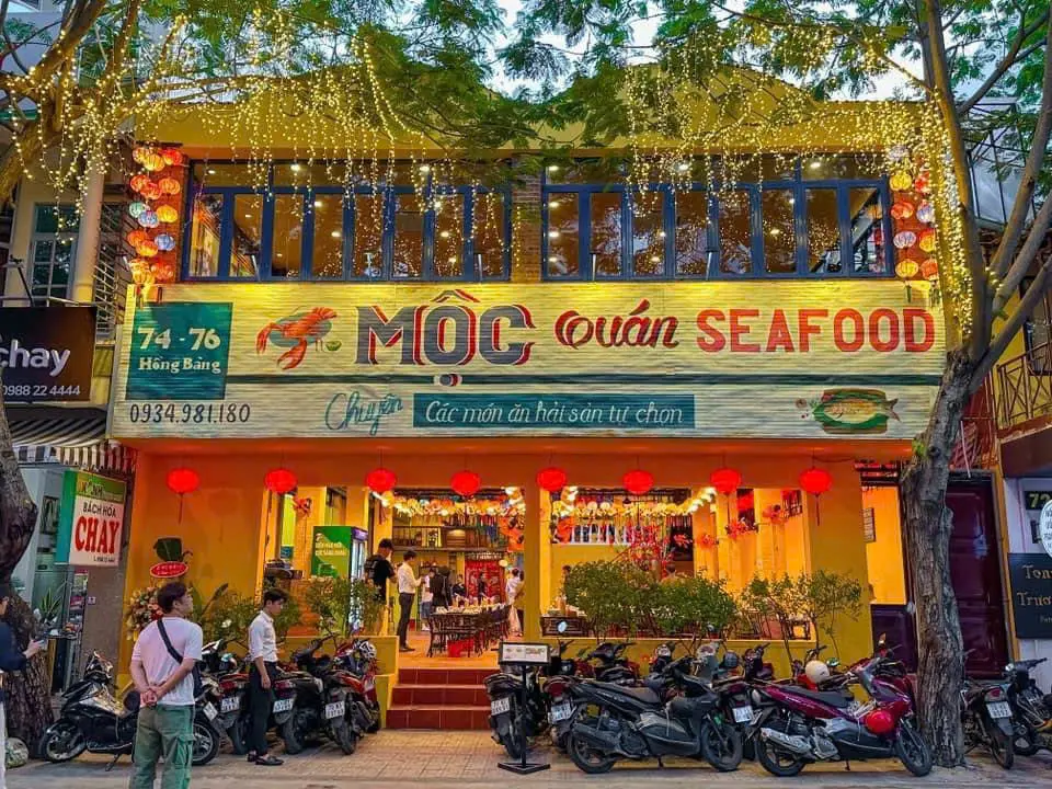Hải sản Mộc Quán mang đến trải nghiệm hải sản tươi sống đúng chất phố biển. Nguồn nguyên liệu được tuyển chọn kỹ lưỡng, đảm bảo tươi trong ngày, chế biến ngay khi khách gọi để giữ trọn vị ngọt tự nhiên. Thực đơn đa dạng từ món quen thuộc dân dã đến đặc sản cao cấp, phù hợp mọi khẩu vị và những bữa tiệc sum vầy. Tại Mộc Quán, mỗi món ăn là một câu chuyện từ đại dương – trọn vẹn tinh hoa ẩm thực biển Việt Nam.