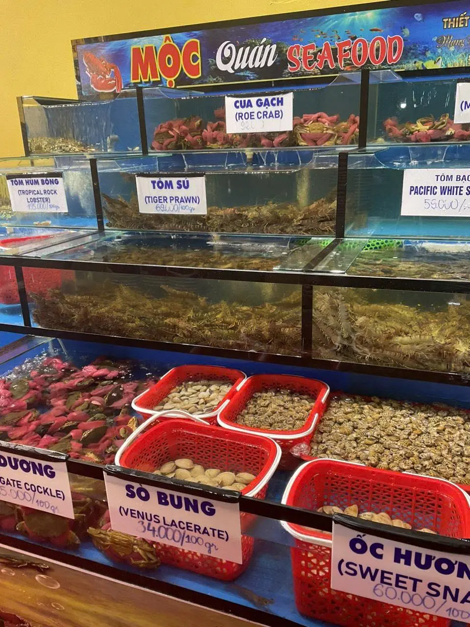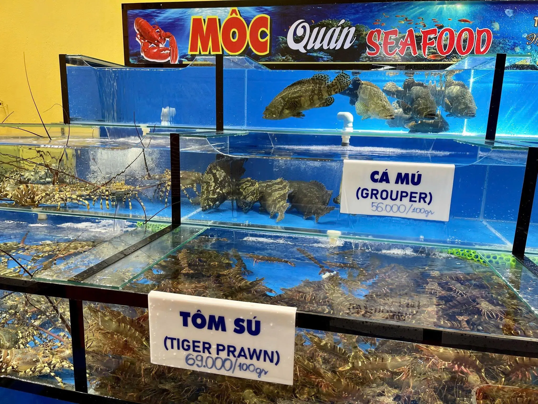 Tại đây, thực khách có thể tự chọn hải sản tươi còn trong bể như tôm, mực, cua… và yêu cầu chế biến theo nhiều kiểu: hấp, nướng, xào muối, sốt me… tùy khẩu vị.